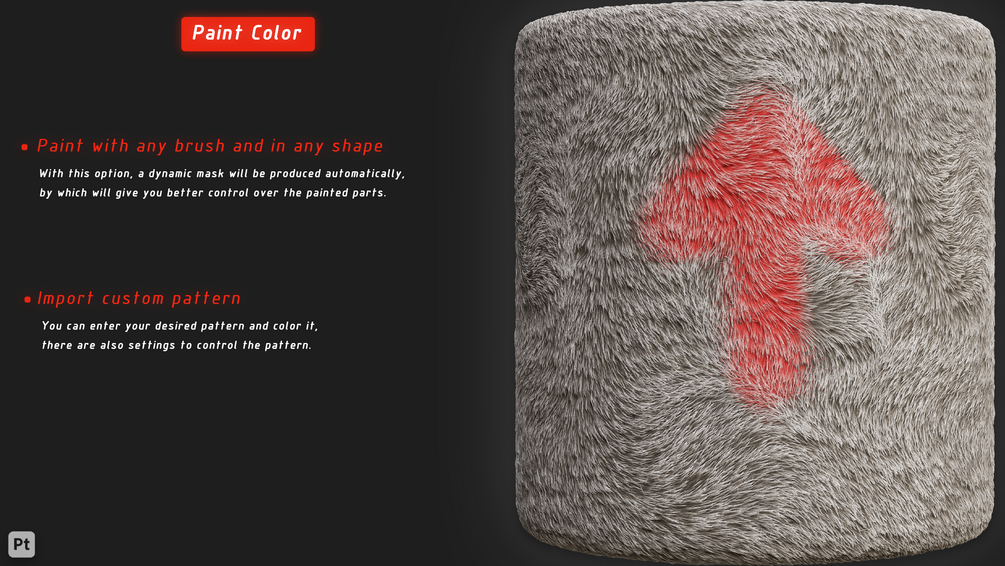 With this smart material, you can create advanced fur material in any direction and color with just a few clicks!