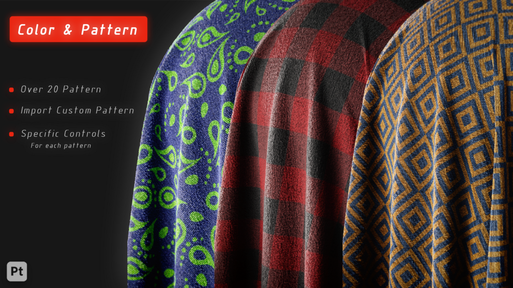 In the color and pattern section, you can add more than 20 patterns to your fabric. You can modify them, as well as import your own patterns.